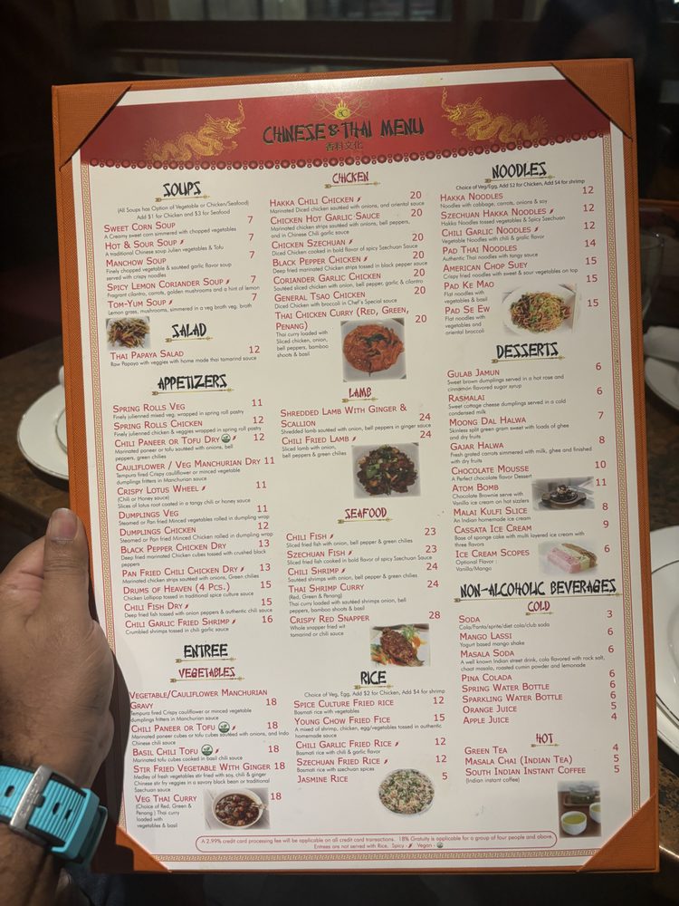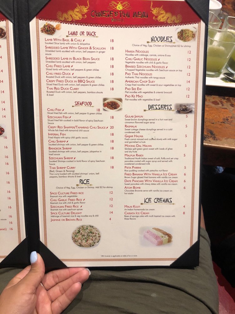 Spice Culture offers a diverse menu blending Indian, Thai, and Chinese cuisines, with a focus on vegetarian options. Located at 4941 Stelton Rd in South Plainfield, NJ, this restaurant impresses with its delivery and takeout options, romantic ambiance, and wheelchair accessibility. Customers rave about the flavorful dishes, such as the Paneer Tikka Shaslik and Chili Garlic Noodles. The Cauliflower Manchurian and Lotus Wheel appetizers receive high praise for their unique flavors. The Veg Rajbogh and Chili Paneer showcase the restaurant's commitment to bold and authentic taste. With a full bar, outdoor seating, and live music on certain days, Spice Culture promises a memorable dining experience. Make sure to try their lunch specials for a great deal and satisfying meal.