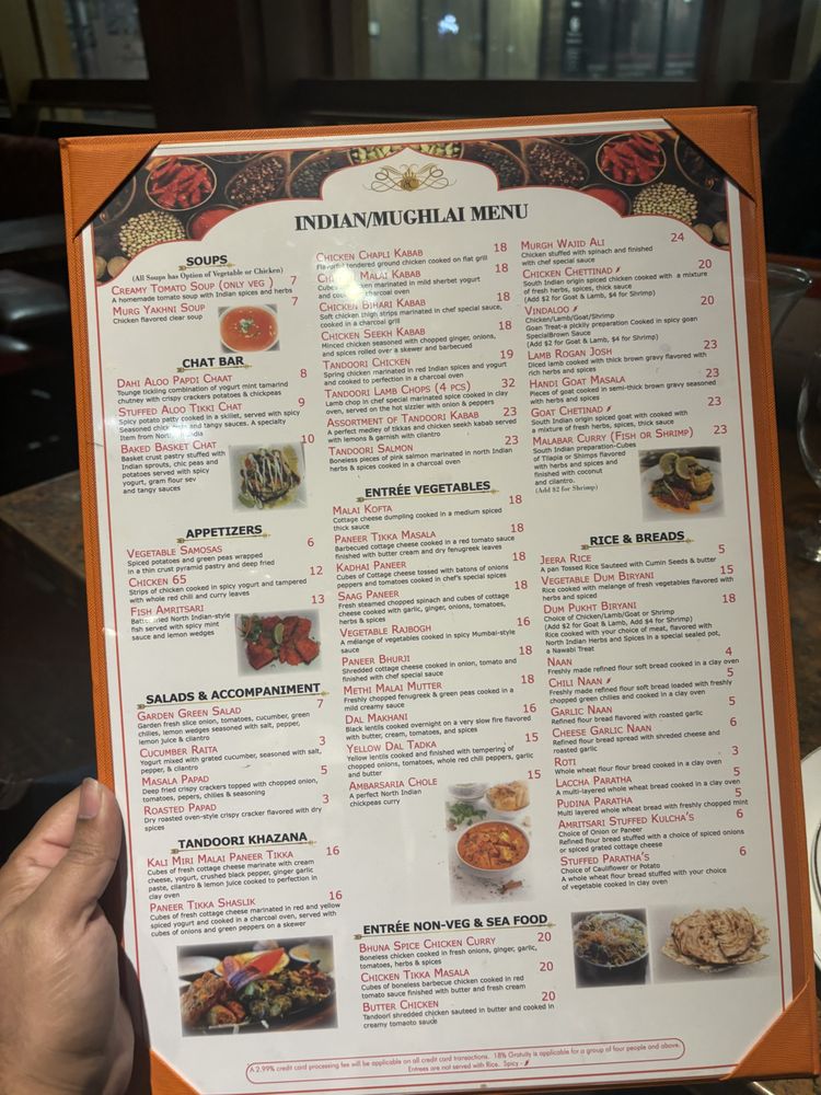 Choice of Chicken/Lamb/Goat or Shrimp (Add $ for lamb $ for shrimp) Rice cooked with your choice of meat, flavored with North Indian Herbs and Spices in a special sealed pot, a Nawabi Treat Tandoori Breads Vegetarian Egg Chicken Shrimp